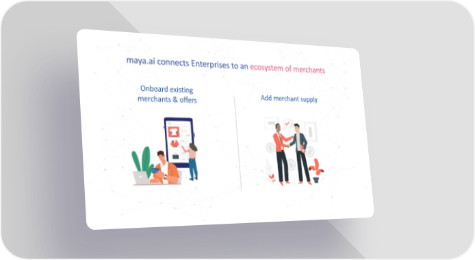 maya.ai connects Enterprises to an ecosystem of merchants Onboard existing Add merchant supply merchants & offers