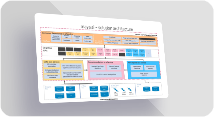 maya.ai – solution architecture Open API. Easy Configuration. Plug n Play Customer Experience as a Service Retail Bazaar Trigger & Context based recos B2B predictive marketplace Consumer Merchant Enterprise Mobile lifestyle apps apps assets banking apps Category Experiences incl. Travel P2P & P2M payments Upsell/x-sell recommendations (web/mobile) Dashboards Wallets Custom apps Use cases & Territory Management Customer loyalty management +++ Interfaces experiences Cognitive BIM API Partner Vendor Inventory Agent Taste API Engage Results Lists API Payments Merchants Cashback APIs API API API API API API API API API +++ Territory Search Product Destinatio Insights Genome Interactio User API Itinerary Affiliate Offers API Fulfilment API API API n API API API n API API API API Data as a Service Recommendation as a Service Marketplace as a Service API extraction User-centric data lake to power automation experience-oriented solutions Patented TasteGraph Patented Choice AI Global Products Global Enterprise Algorithms algorithms Repository Repository Entity standardization & disambiguation Operations & business-centric Global Merchant Distributed data data lake to deliver 50+ SOTA & out-of-box algorithms Repository movement optimization-oriented solutions rd rd Enterprise Transaction CRM 3 Party 3 Party System Merchant Data Data Partner Enrichment Integrations data Systems Systems Integrations Data Offer Merchant Core Repository Details Communication +++ 3rd party APIs +++ banking E-Wallet Identity Systems system platform verification Infrastructure & Integrations